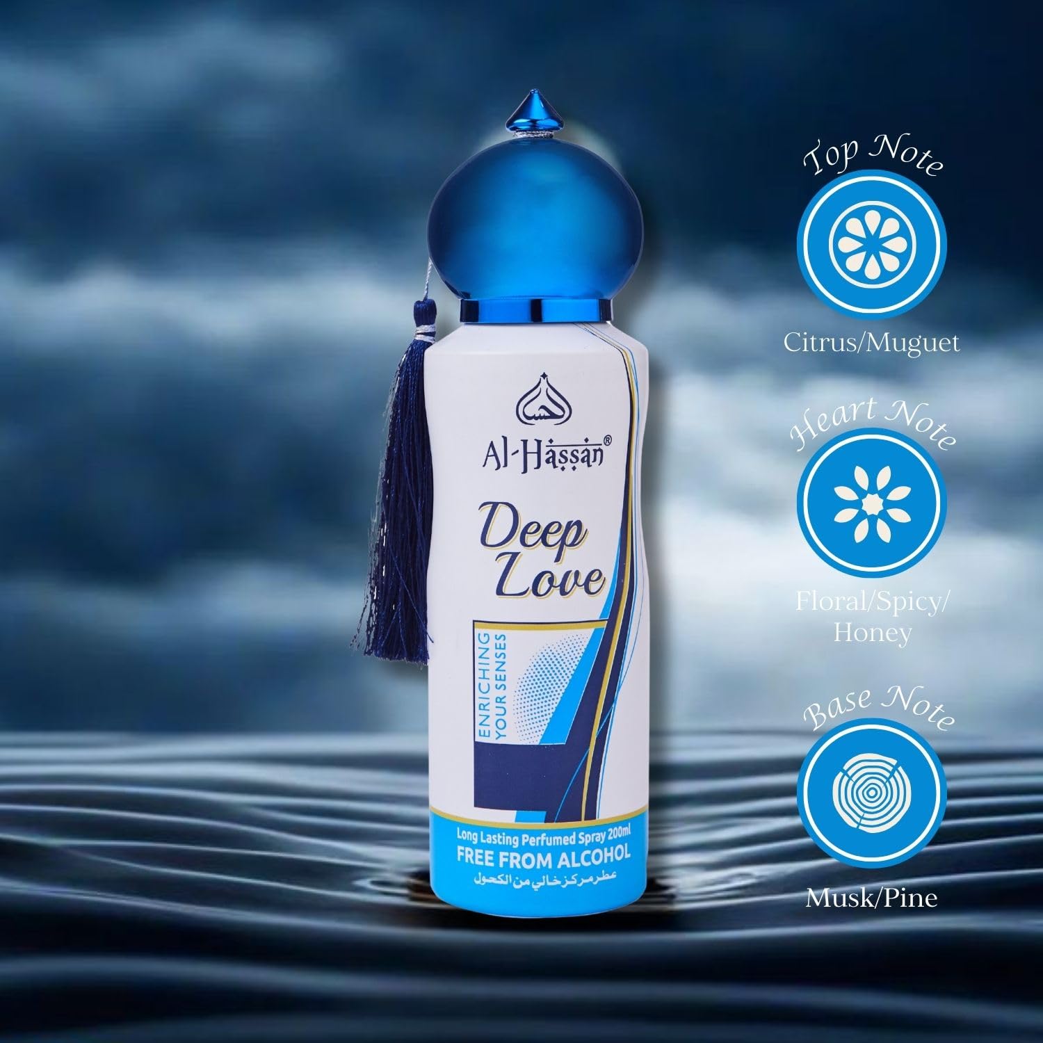 Al – Hassan Deep Love Perfumed Spray For Women – 200ml | Long Lasting & Captivating Fragrance | Body Spray