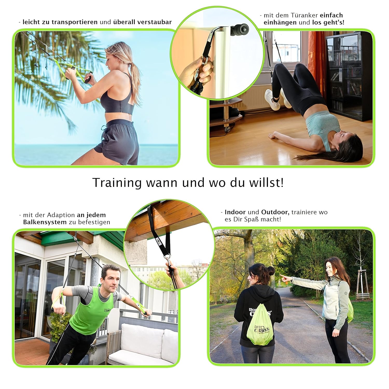 Bodytorc Suspension Trainer, Bodyweight Training Straps for Full Body Workouts at Home, Includes Door Anchor, Extension Arms and Advanced Foot Straps. Green