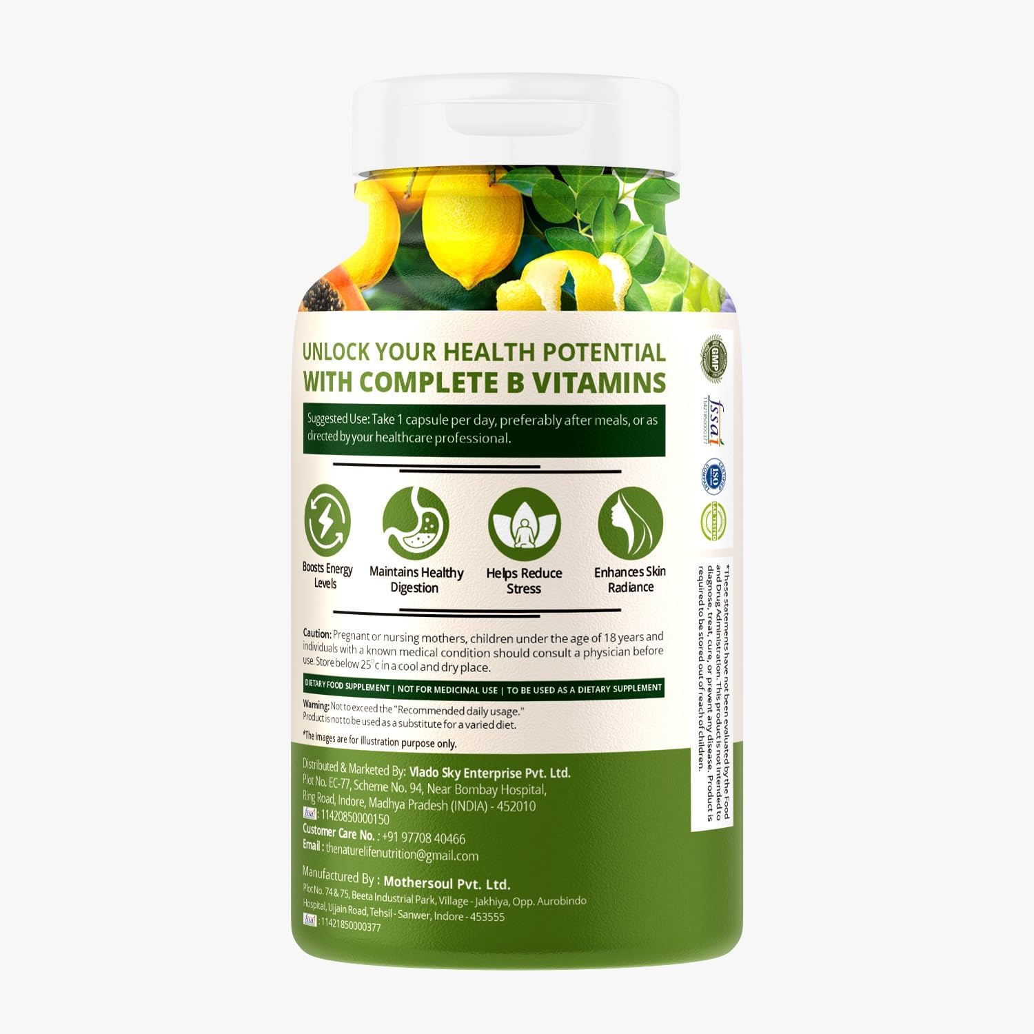 Naturelife Plant Based Vitamin B Complex with 100% RDA B1, B2, B3, B5, B6, B9 & B12 | Hair Growth, Boost Energy And Immunity (60 Capsules)