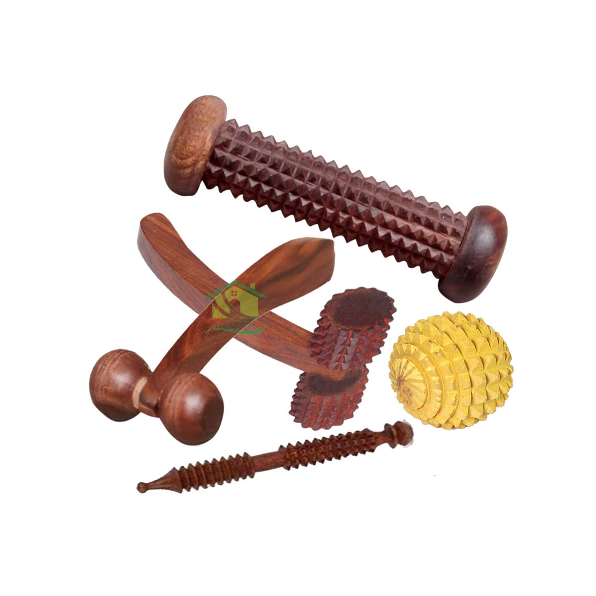 FA INDUSTRIES® Wooden Rod massager for Foot (7×2) In, Wooden Neck massager (6×3) In, face massager (5×2.5) In, wooden Ball massager (2×2) In, wooden Jimmy massager (5×1) In