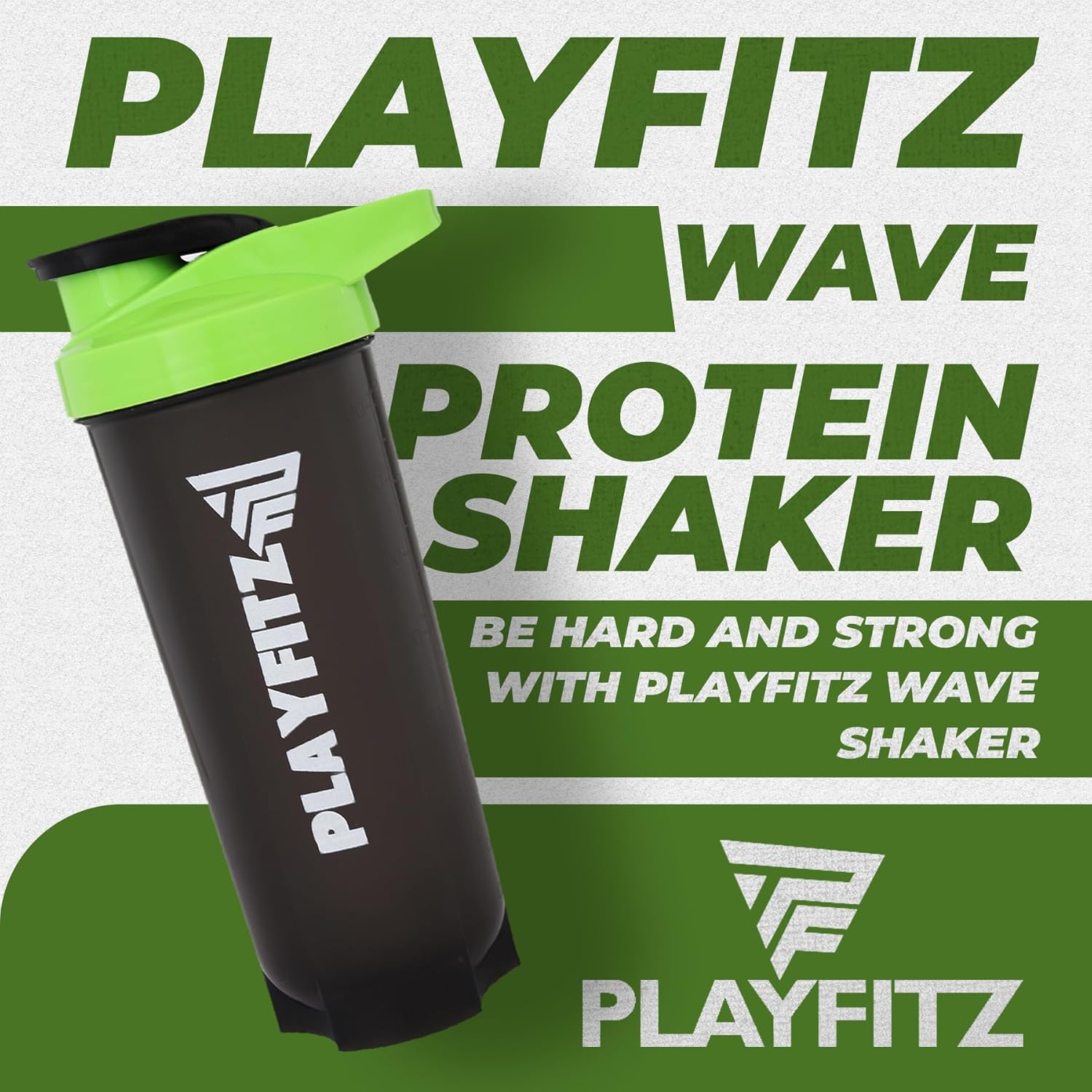 PLAYFITZ Wave Gym Protein Shaker 700ml – Leak-Proof, BPA-Free, Smooth Mixing Sipper Bottle Protein, Pre-Workout, & Supplements – Men & Women, Shaker for Gym, Travel, & Daily Use (Set of 1)(Green)