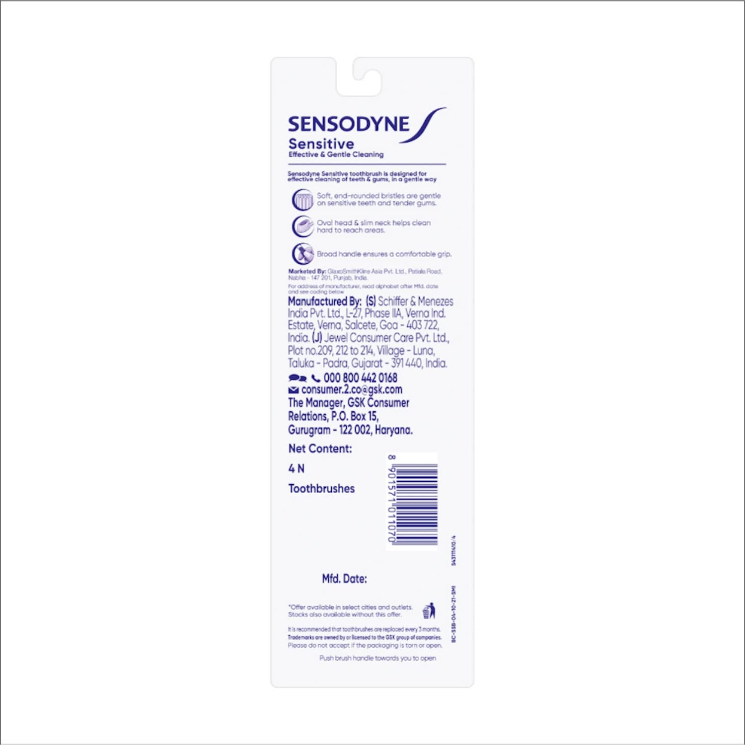 Sensodyne Sensitive Toothbrush with Soft Bristles Pack – Adult, Manual, Multicolor 4 Pieces