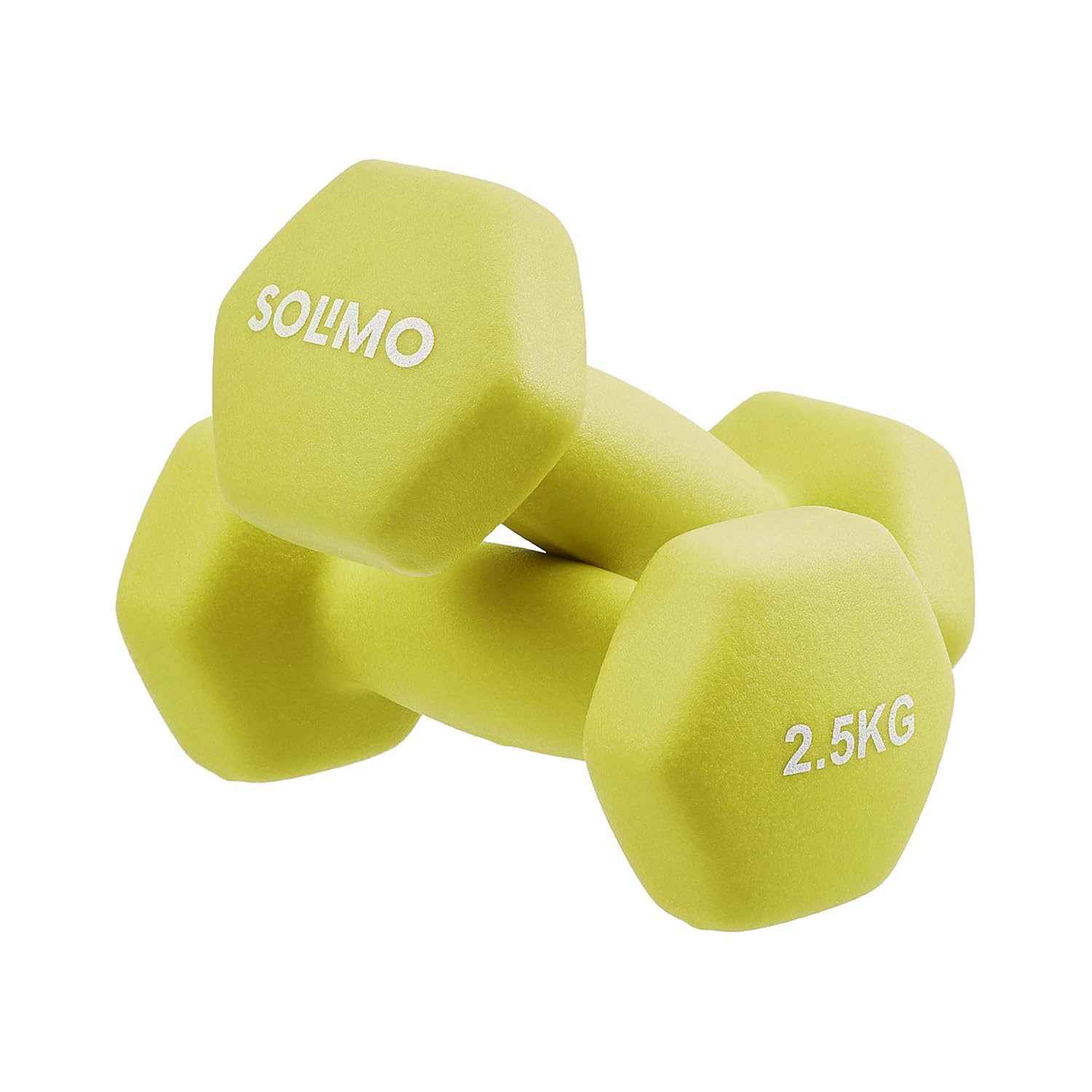 Amazon Brand – Solimo Neoprene 2.5 kg Dumbbell | Easy Grip for Comfortable Workout | Home Gym | Muscle Building | Set of 2 – 2.5 kg | Light Green