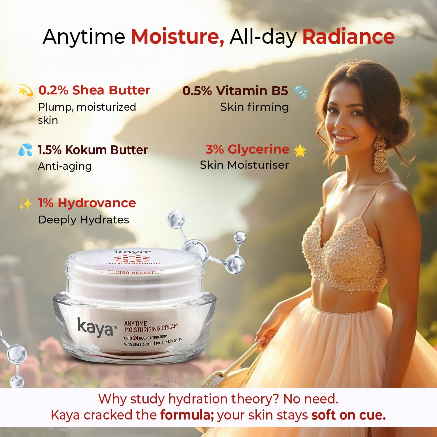 Kaya Clinic Anytime Moisturizing Cream 24-Hour Moisture Lock | Shea & Kokum Butter, Pro-Vitamin B5 & Hydrovance | Dermatologist-Developed With 22 Years Expertise | 50 Ml