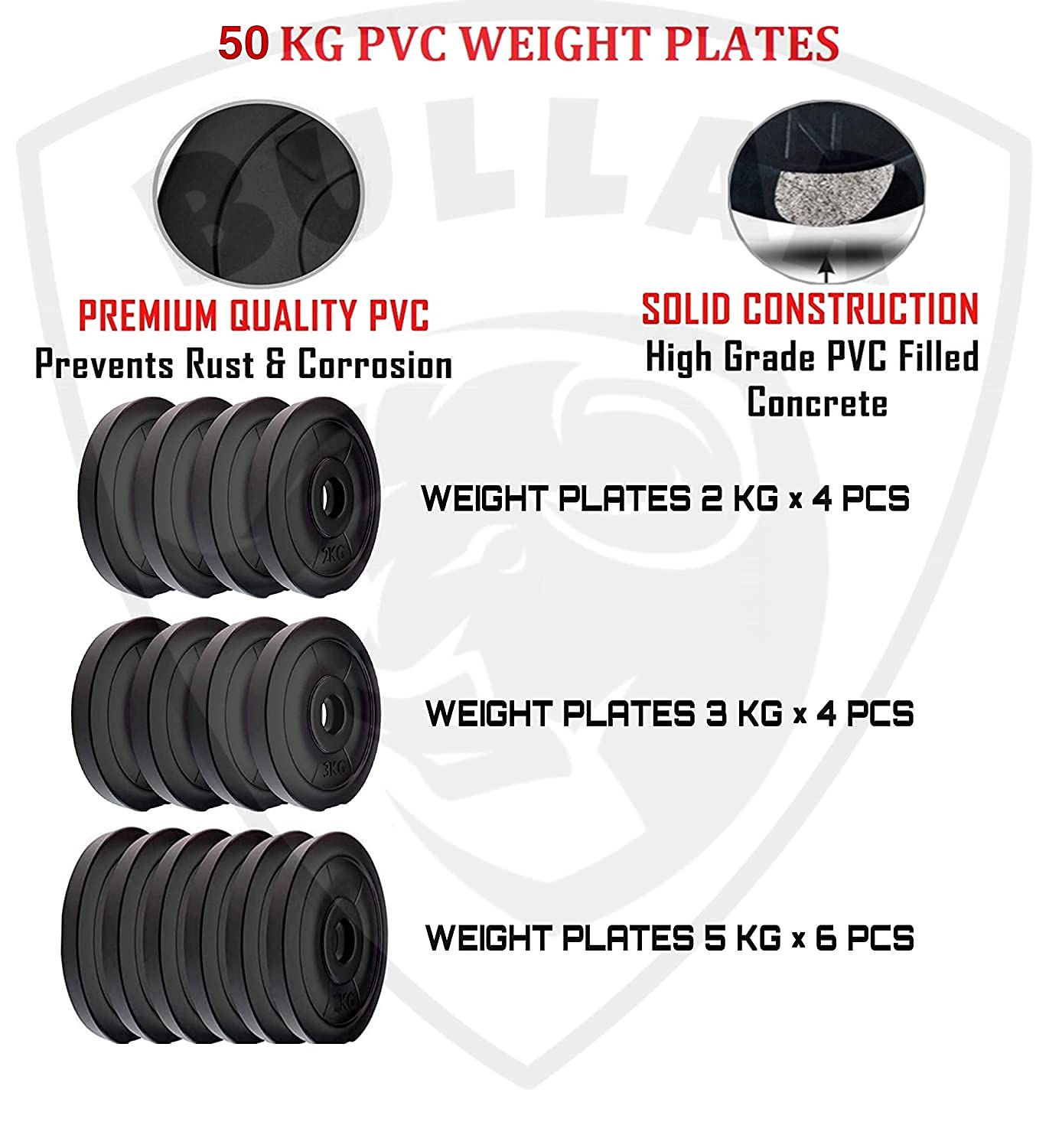 BULLAR Home Gym Set, Home Gym Combo, Home Gym Equipments for men, Home Gym Kit with 50Kg Weight Plates, 5ft Straight Rod and 3ft curl Rod, 1 Pair Dumbbell rods & Accessories