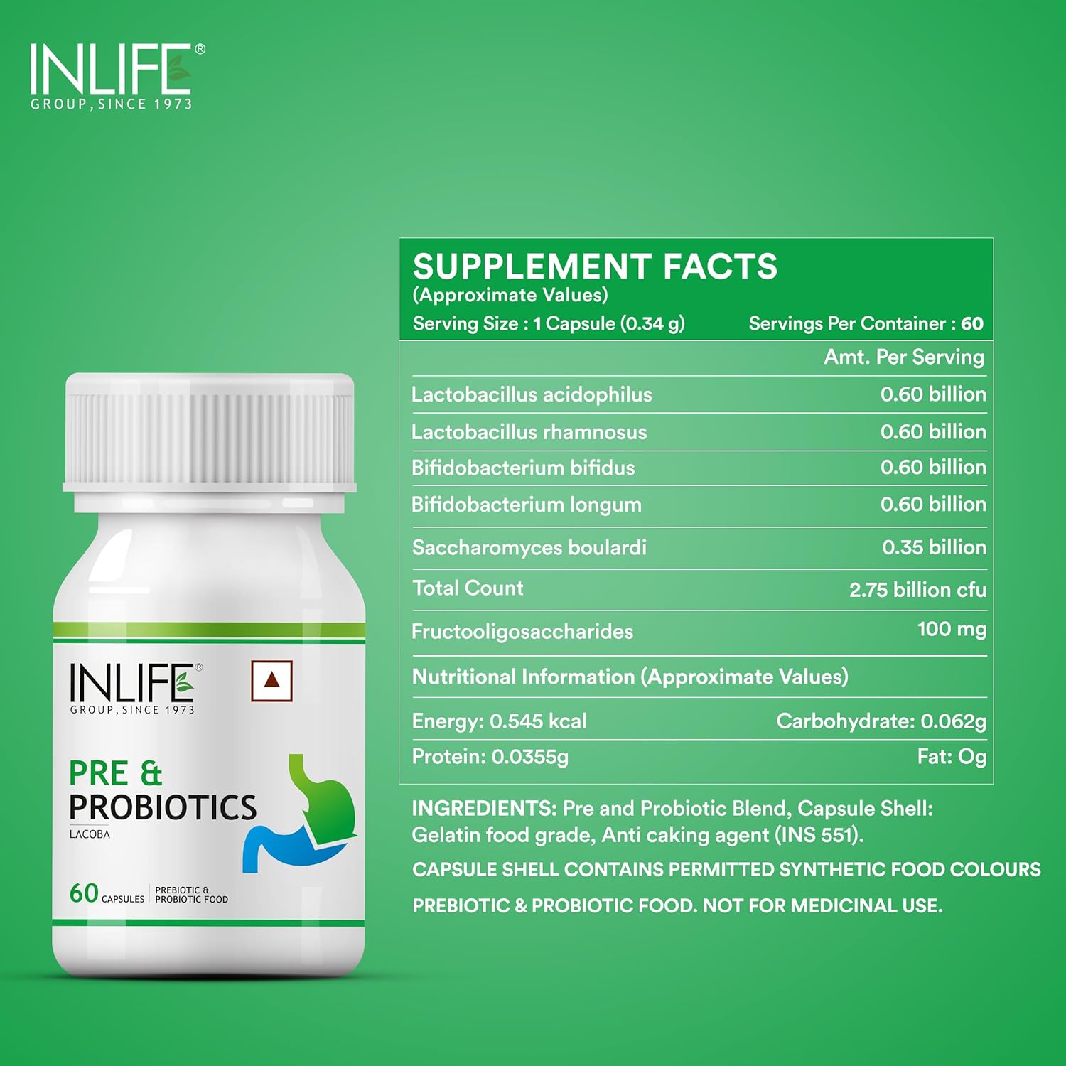INLIFE Prebiotic and Probiotics Forte Supplement for Men & Women 25 billion CFU with 14 Strains | Digestion Gut & Immunity Health Supplement – 60 Vegetarian Capsules (2 Pack)