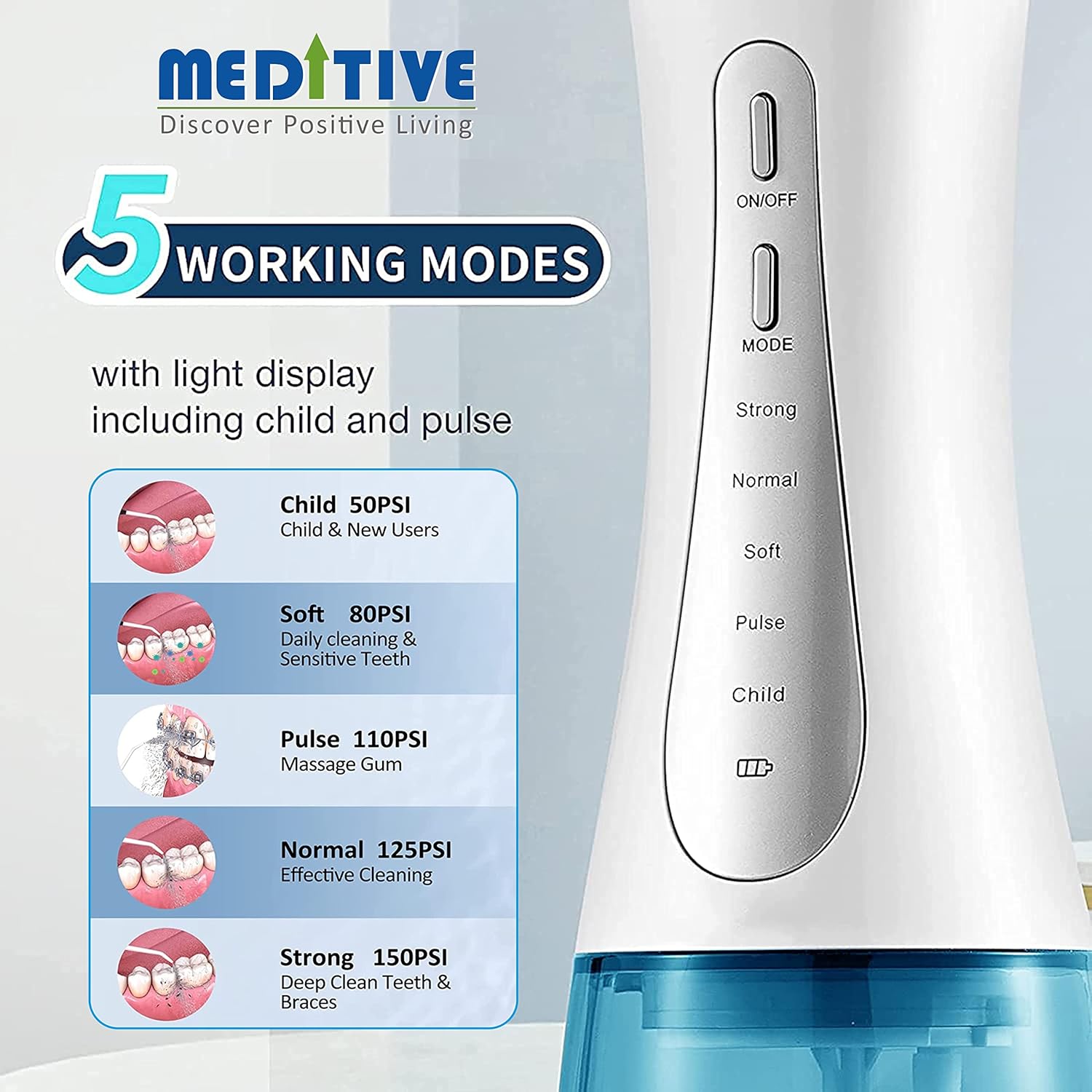 MEDITIVE Water Flosser Cordless for Teeth, Portable Oral Irrigator, Cordless Water Dental Flosser Teeth Cleaner, IPX7 Waterproof Teeth Cleaner with 350ml Detachable Water Tank