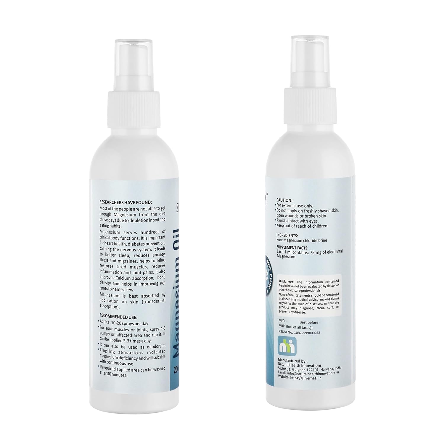 SILVERHEAL Magnesium Oil Spray (200 ml) – 100% Natural Magnesium Oil, for Muscle Relaxation & Rejuvenation, Joint Pain Relief, Headache, Cramps, Insomnia, Anxiety, Calming Nervous System (Pack of 1)