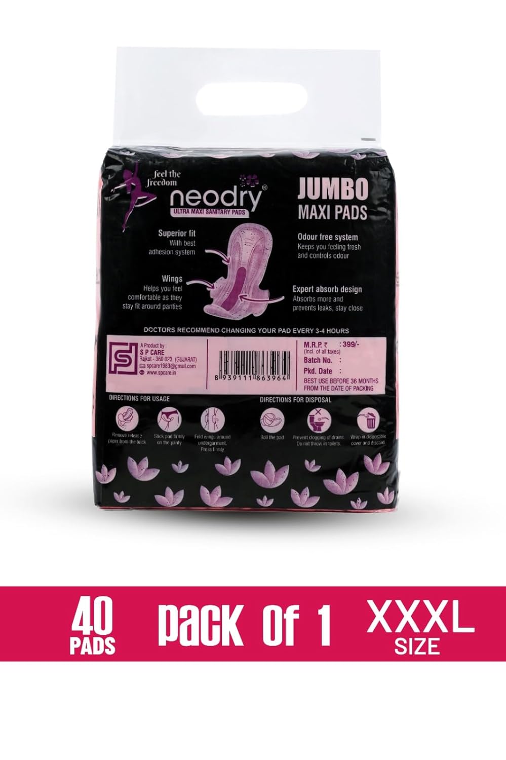 Cottony Soft Sanitary Pads for Women & Girls | Upto leakage protection | Absorbs 2x Faster with Wider Back | Nights | 40 Pads each pack | 1 Pack- XXXL