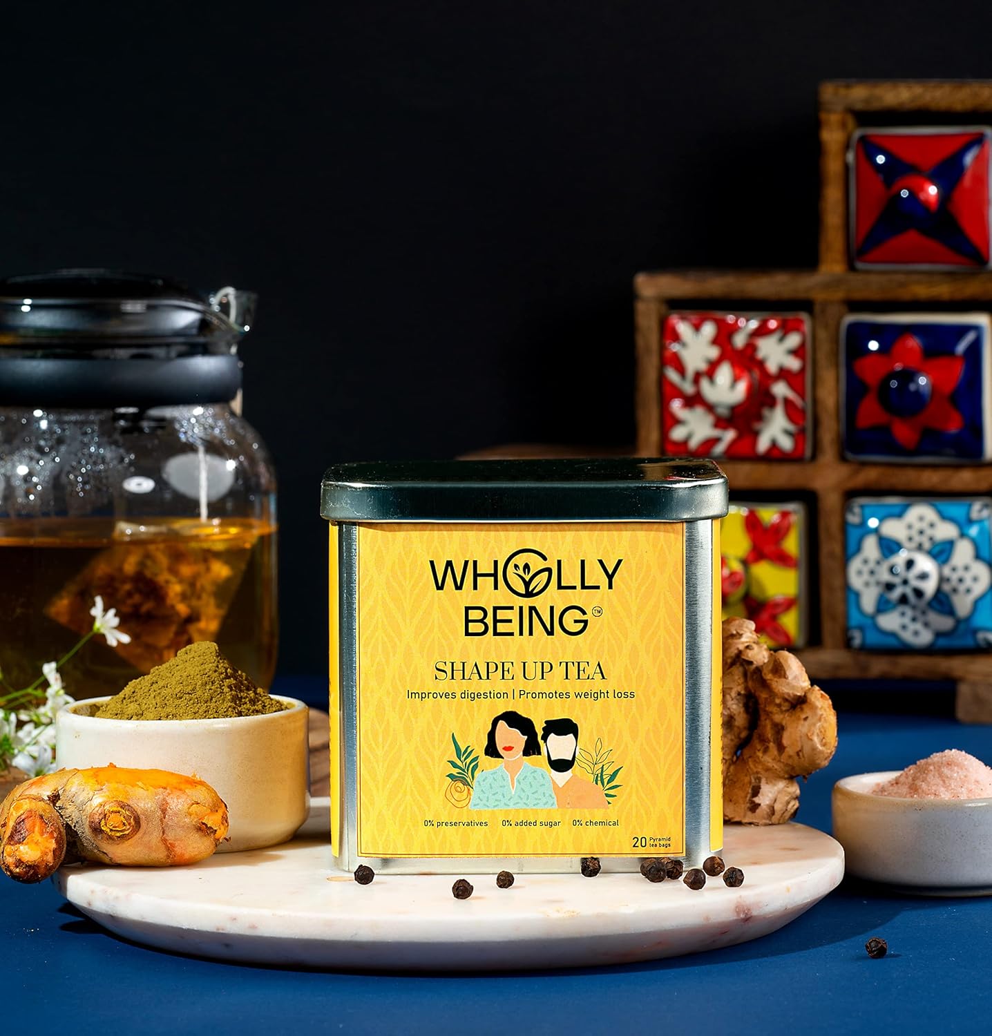 Wholly Being- Shape Up for faster metabolism & improved digestion with Punarnava, Manjistha, Harad, Pipal, Senna Leaves, Triphala (20 tea bags)