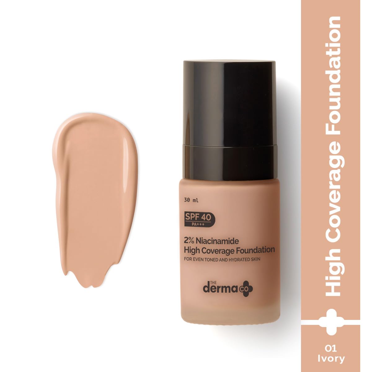 The Derma Co 2% Niacinamide Medium Coverage Matte Liquid Foundation For All Skin Types With 1% Hyaluronic Acid & Spf 40 Pa+++ For 12 Hour Long Stay & Oil Control – 01 Ivory, Pack Of 1