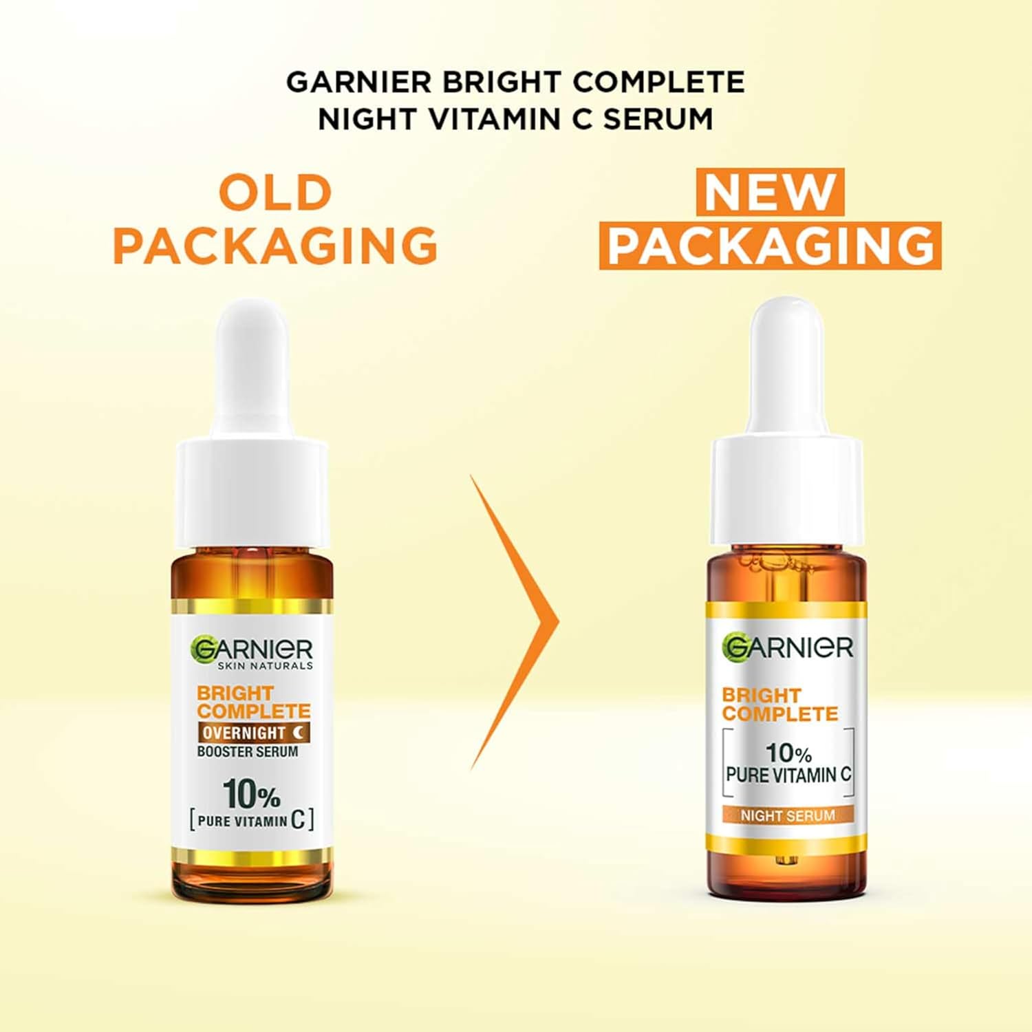 Garnier Bright Complete Night Vitamin C Serum With 10% Pure Vitamin C for Bright Skin, PM Routine Vitamin C Serum Suitable For All Skin Types, 15ml