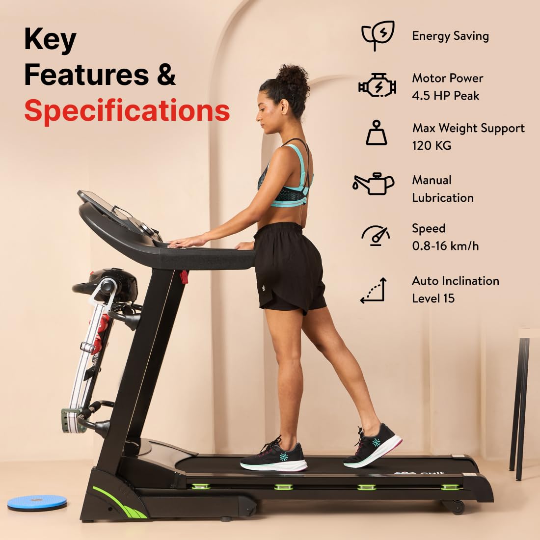 Cult Run M4.5 4.5HP Peak, Max Weight: 120 Kg, Auto Incline, Multimode Motorized Treadmill for Home Gym Fitness & 1 Year Warranty