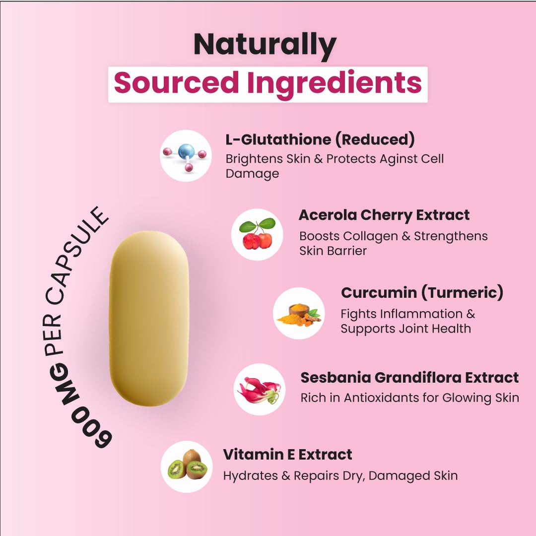 ZEROHARM Skin Radiance Tablets| 600mg with L-Glutathione, Acerola Cherry Extract for High Pigmentaion Skin| Biotin Vitamin C & E to promote Healthy Skin and Reduces Dark Spots. | 60 Veg Tablets