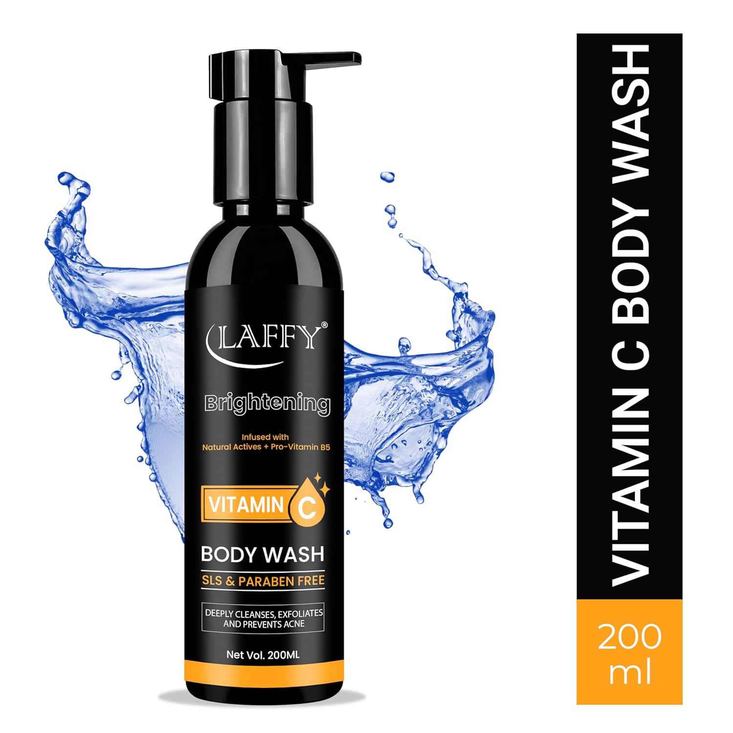 LAFFY – Refreshing Body Wash (200ml) | Gently Cleanses & Hydrates Skin | With Natural Extracts & Antioxidants | Daily Body Cleanser for All Skin Types (Pack of 1, Vitamin C)