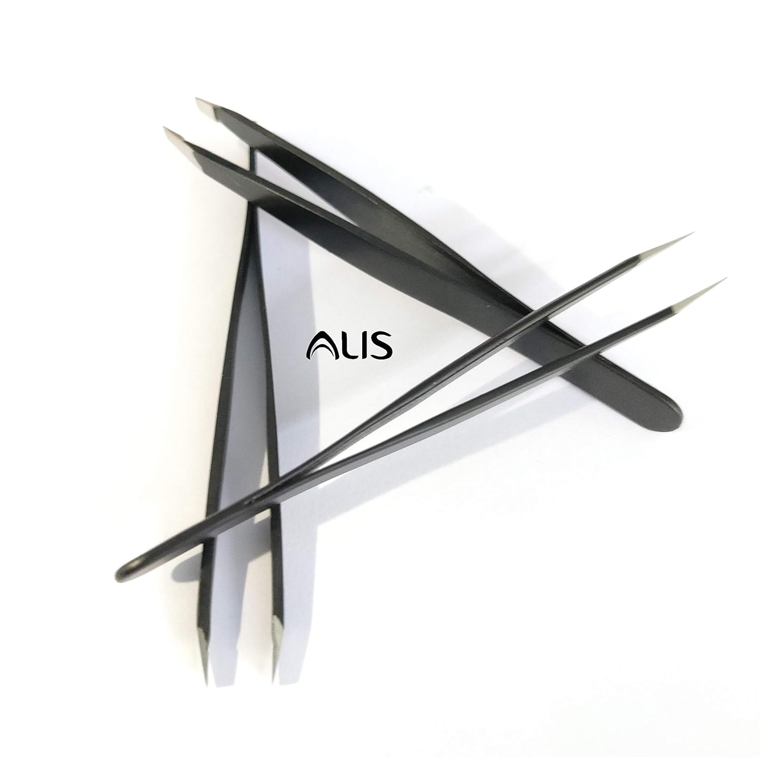 Alis Professional Stainless Steel Tweezers Set – 3 Pieces Combo Set | Great Precision for Facial Hair, Eyebrows Extensions, Ingrown Hair, Splinter, Blackhead, Nose Hair Remover (Black)