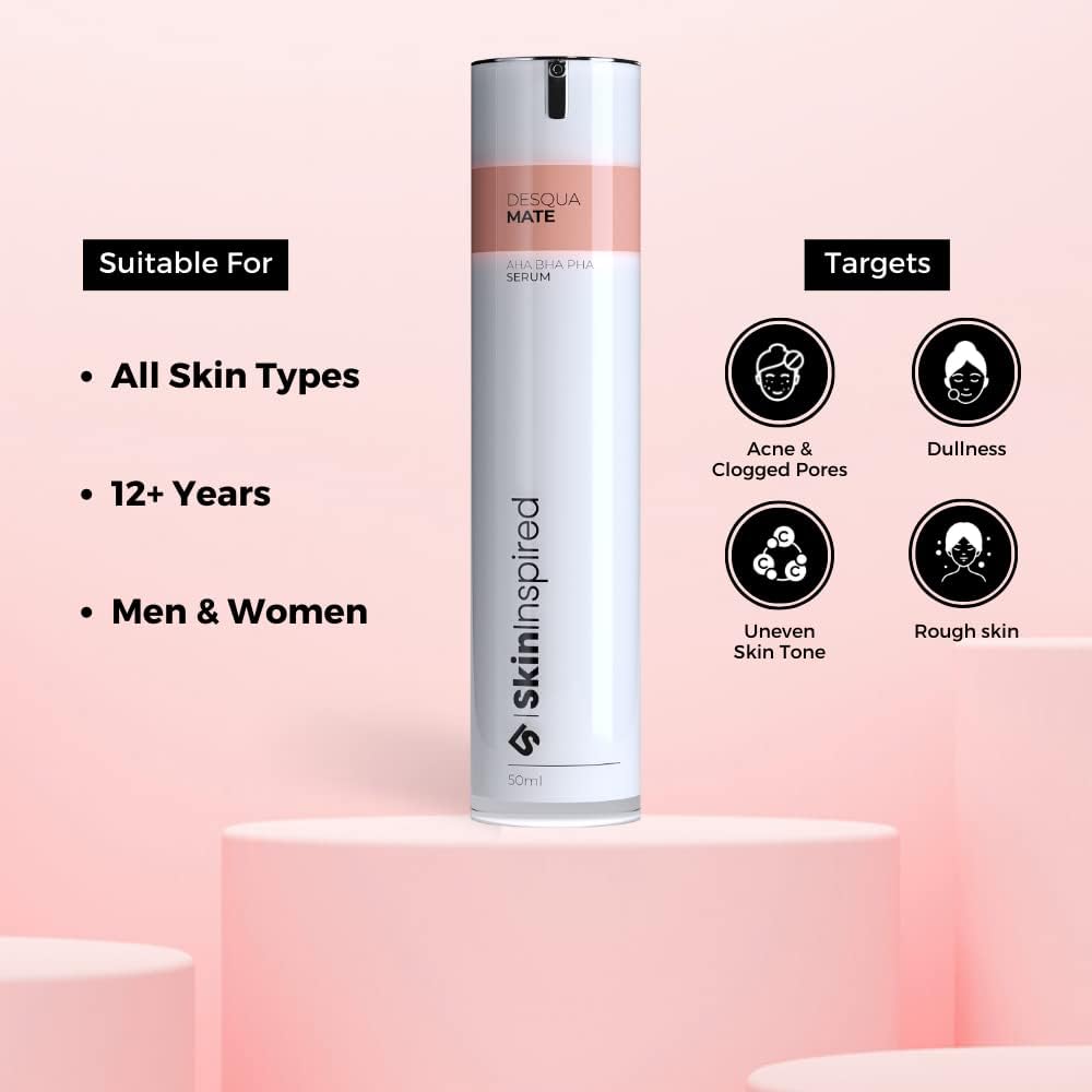 SkinInspired AHA+BHA+PHA Lactic Acid + Salicylic Acid Face Serum|Exfoliating Serum For All Skin Types|Pore Cleansing Face Serum|Reduces Acne & Blackheads|Peeling Solution For Glowing Skin|50 ML