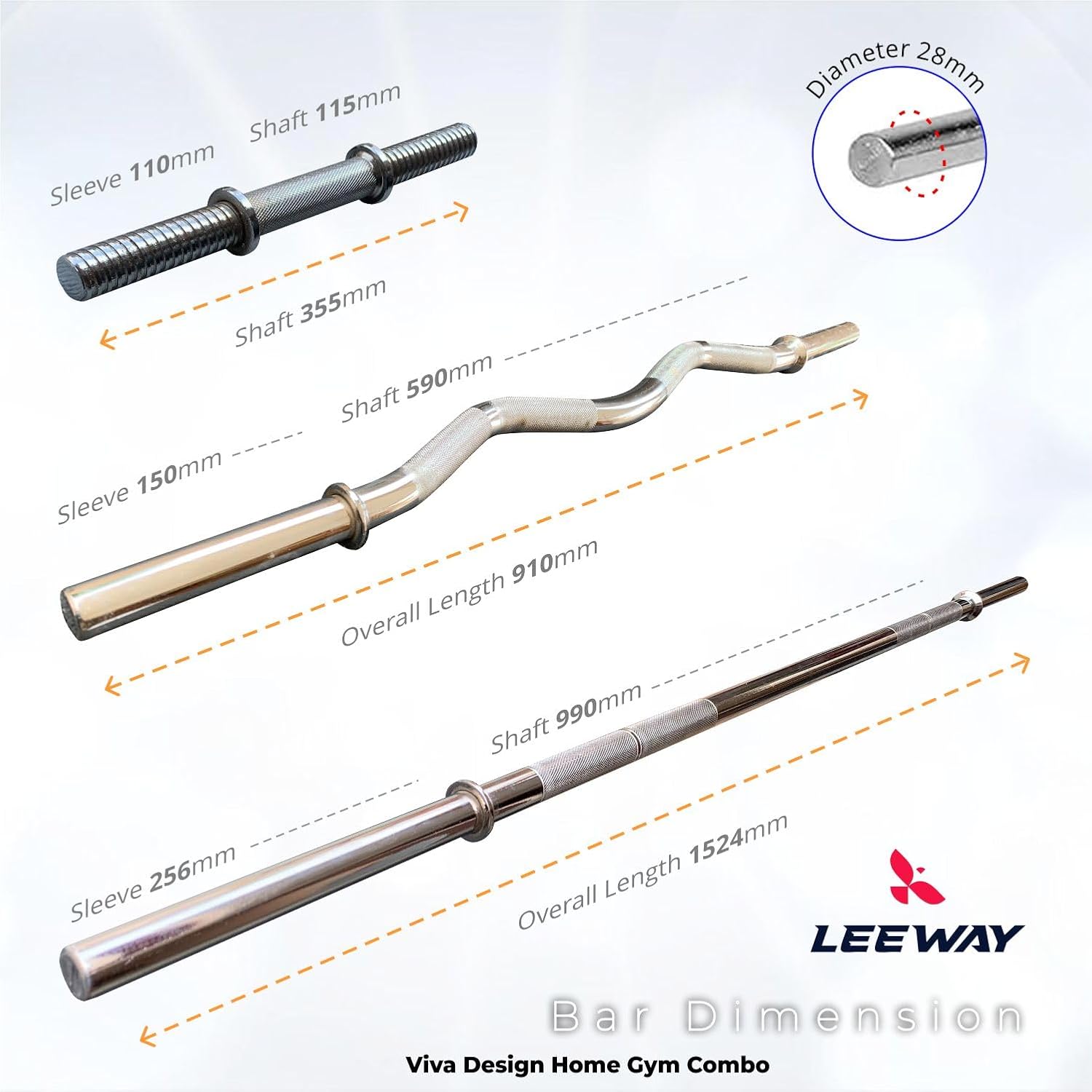 LEEWAY 80 Kg Rubber Weight Plates for Home Gym | Dumbbells & Barbell Set | Curl Rod, Straight Rod, 31mm Hole | Home Gym Combo Set | Fitness Equipment for Men & Women (2.5X4+5X4+7.5X4+10X2), Black)