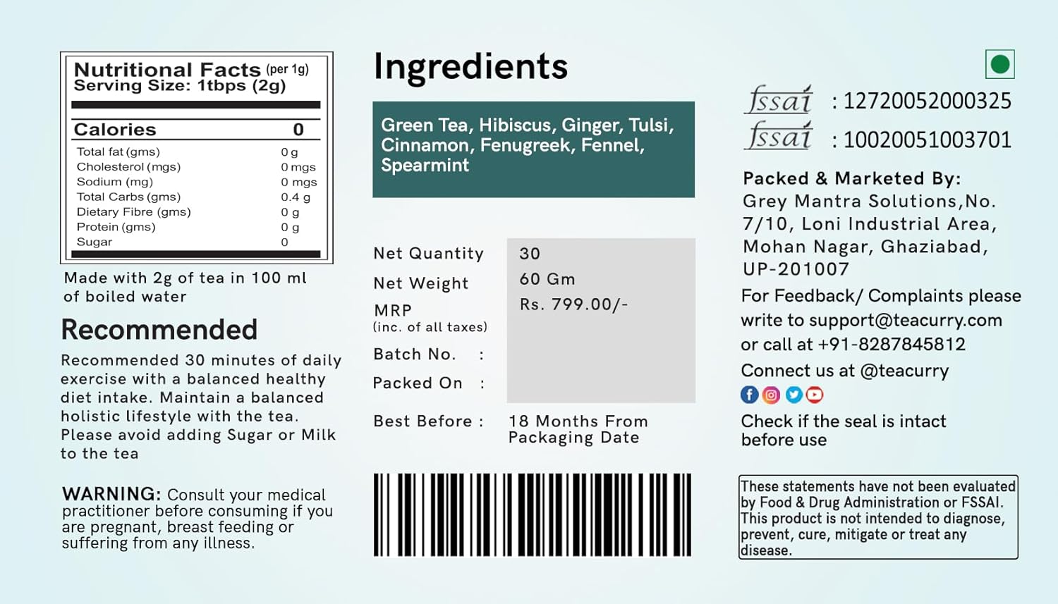 TEACURRY Thigh Fat Tea (30 Tea Bags, 1 Month Pack) – Helps to Reduce Thigh Inches Naturally | Manage Thigh Weight | Men and Women