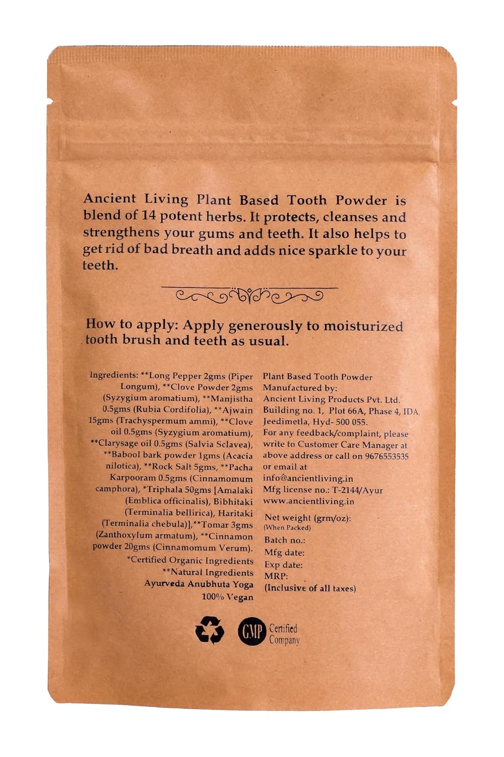 Ancient Living Organic Tooth Powder Pouch – For Healthy Gums and Teeth – Chemical Free – 200 gm