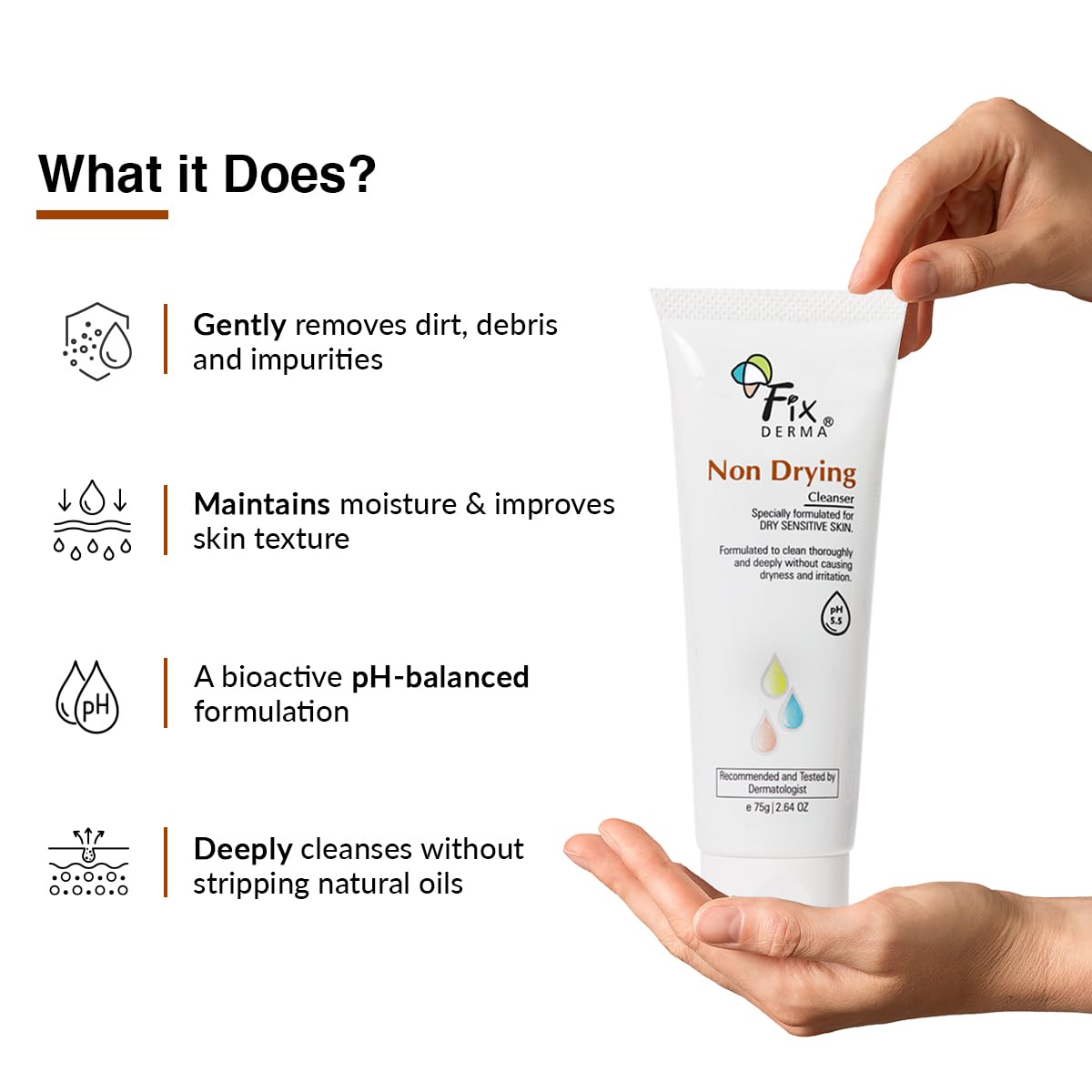 Fixderma Non Drying Cleanser, soap-free & pH Balanced cleanser, Pore-Refining, Dermatologist tested, Face Exfoliator, Non-comedogenic & Non-irritating skin cleanser – 75g