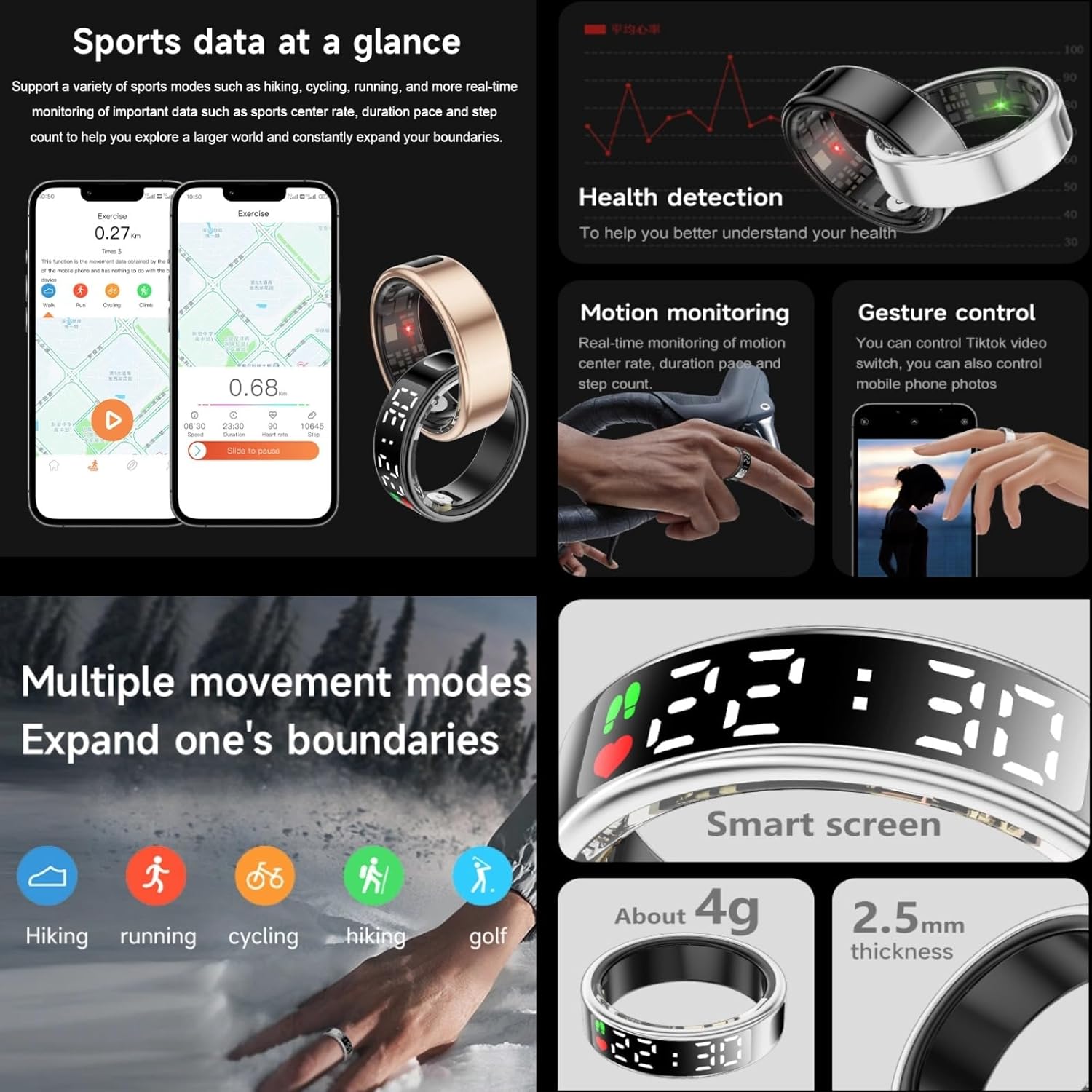 AMZAIZO JCRing Smart Ring Sleep Tracker, Fitness Tracking Wearable, Accurate Monitoring of Pedometer, Heart, Temperature, Titanium with Charging Case, APP for iOS & Android (13)