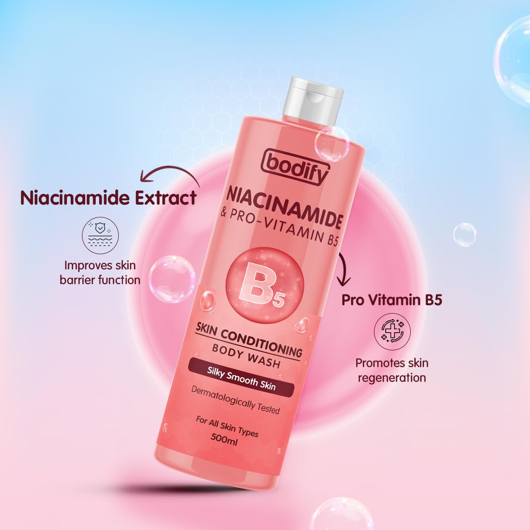 Bodify Niacinamide & Pro-Vitamin B5 Skin Conditioning Body Wash, 500 Ml | Silky Smooth Skin | Paraben Free | All Skin Types