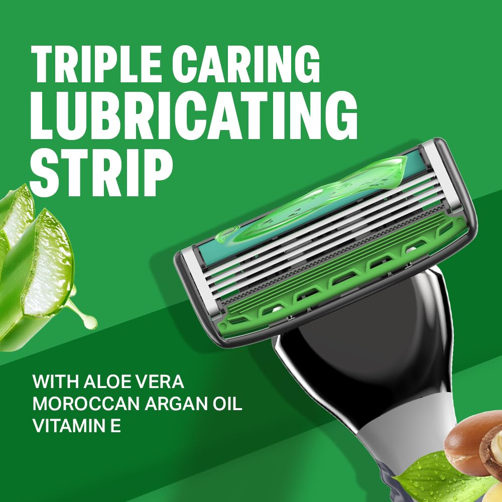 LUBRICATING STRIP: Enriched with the goodness of Aloe Vera, Moroccan Argan oil and Vitamin E, SENSI Flo3 cartridges reduce irritation, leaving your skin feeling refreshed and revitalised after each shave.