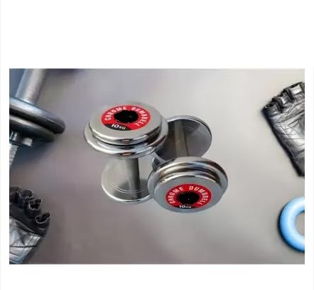 BUDWILL Anti Skid Chrome & Cast Iron Handle Round Shape Dumbbell Fitness Workout 1 Pair Set (5 Kg x 2 = 10 kg-Silver)