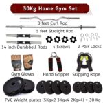 BULLAR Gym Equipment Set for Home Workout,Home Gym Set Combo 30 KG, 3 Feet Curl, 5 Feet Straight Rod + 2X Dumbbell Rods, for Men and Women Perfect Dumbbell Plates for Home Gym, Exercise Set