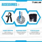 BULLAR Premium 2.0 Home Gym Set, Home Gym Equipments for Men, Home Gym Kit with 8 to 30Kg Weight Plates,3ft curl Rod, 1 Pair of Dumbbell rods & Accesories (8Kg Home Gym Combo with Accesories)