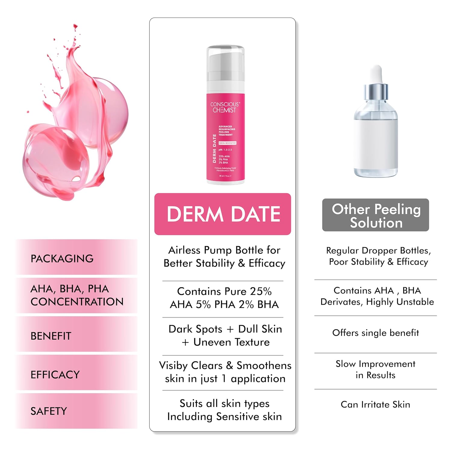 Conscious Chemist® 25% AHA, 2% BHA, 5% PHA Peeling Solution | 30ml | Advanced Resurfacing AHA BHA Peeling Solution, Anti Aging Serum, Exfoliating Face Serum for Men & Women – Derm Date
