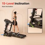 The treadmill offers a spacious running area of 17.7 x 49.6 inches (450 x 1260mm), ensuring comfortable exercise sessions.