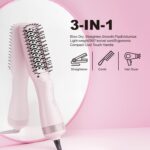 DAN Technology Negative ion Hair Brush, 3 in 1 Ionic Small Brush Hair Dryer with Brush Cases, One Step Paddle Brush Dryer & Styler, Anti-Scald & ALCI Safety Plug