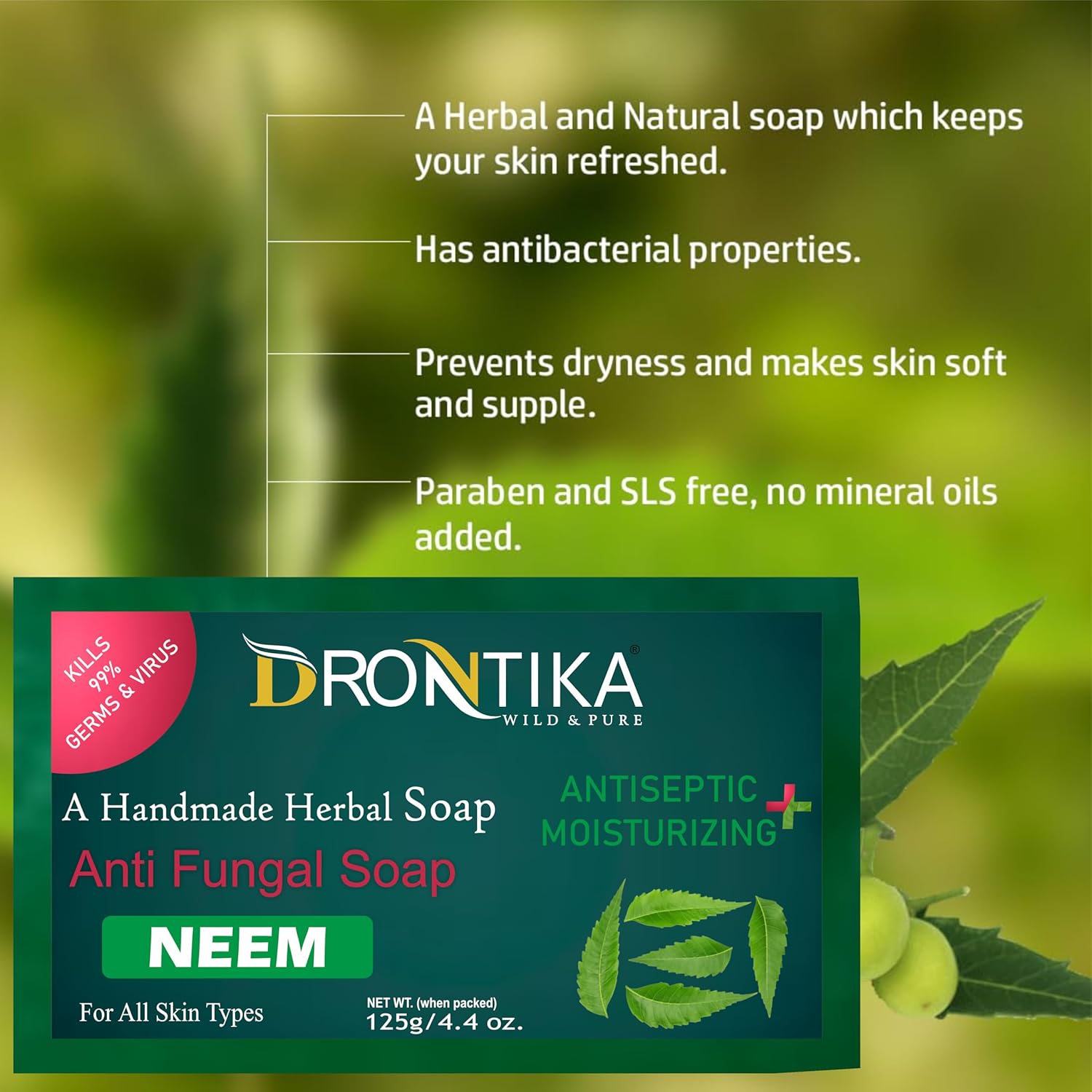 Drontika Wild & Pure Herbals Neem Bathing Soap (Pack of 2 (250gm.), Neem)