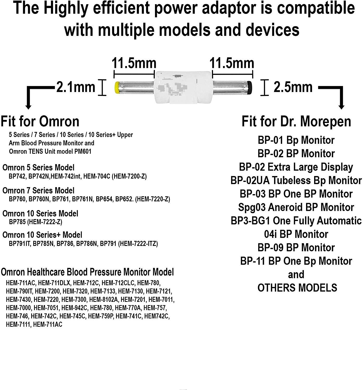 6V AC/DC SMPS Power Adapter for Blood Pressure Monitor [Dual Pin size 2.1mm & 2.5mm] BP Machine Adapter -Black