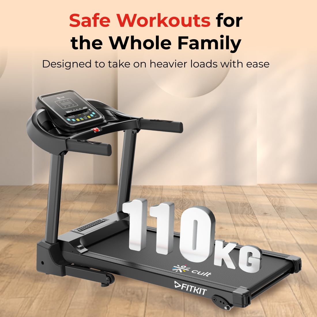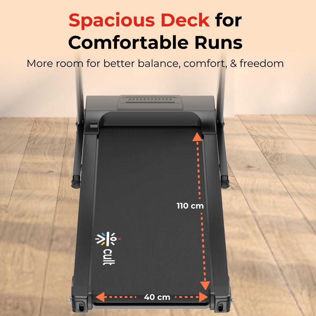 Sturdy & Durable Design: Supports up to 110 kg with a solid build and spacious running area (40 cm x 110 cm) for comfort and stability.