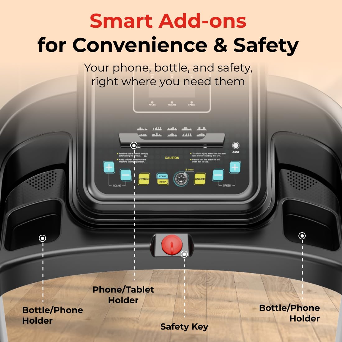 Powerful Motor & Performance: 5.5 HP peak BLDC motor, 2.75 continuous power, and speed range of 1.0-12.8 km/h for varied workouts.