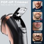 【WIth Pop-up Trimmer】 It is located on the back of the cordless razor head,you can use the skin-friendly pop-up beard trimmer to shave sideburns, beard shapes, mustache and facial hair easily.