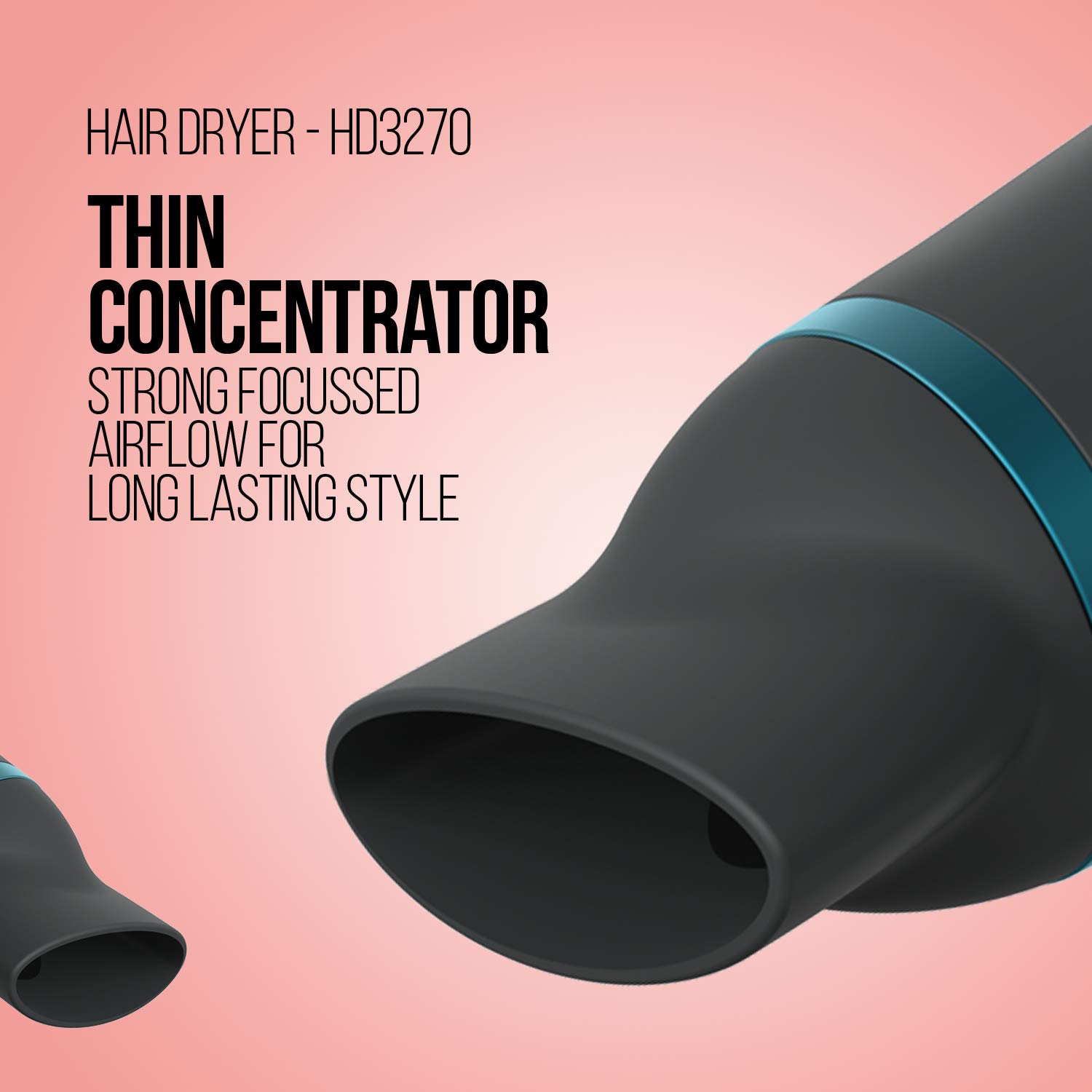 A thin concentrator required for a focused blow dry and styling