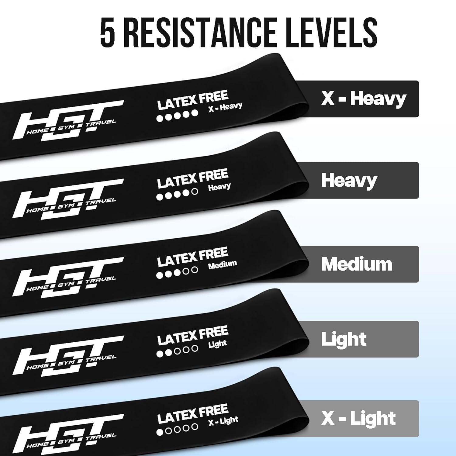 EXTRA STRENGTH RESISTANCE LOOP EXERCISE BANDS – Take your workouts to the next level with HGT’s latex-free resistance loop exercise bands. Our resistance band set includes 5 exercise bands ranging from extra light to extra heavy, featuring extra strength material that will never snap, rip, or roll up.