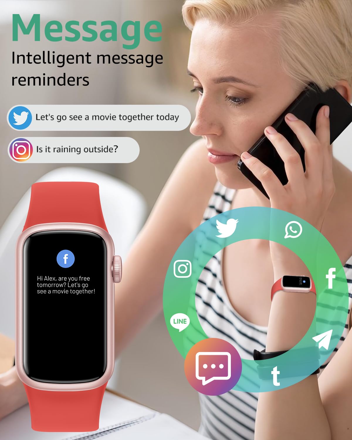 💜【Convenience in Daily Life】The fitness tracker can notify you of new messages, incoming calls, weather, reminders, etc., allowing you to be up to beats with your life and work. It can also make your life more convenient with music playback control, remote shutter and finding your phone.