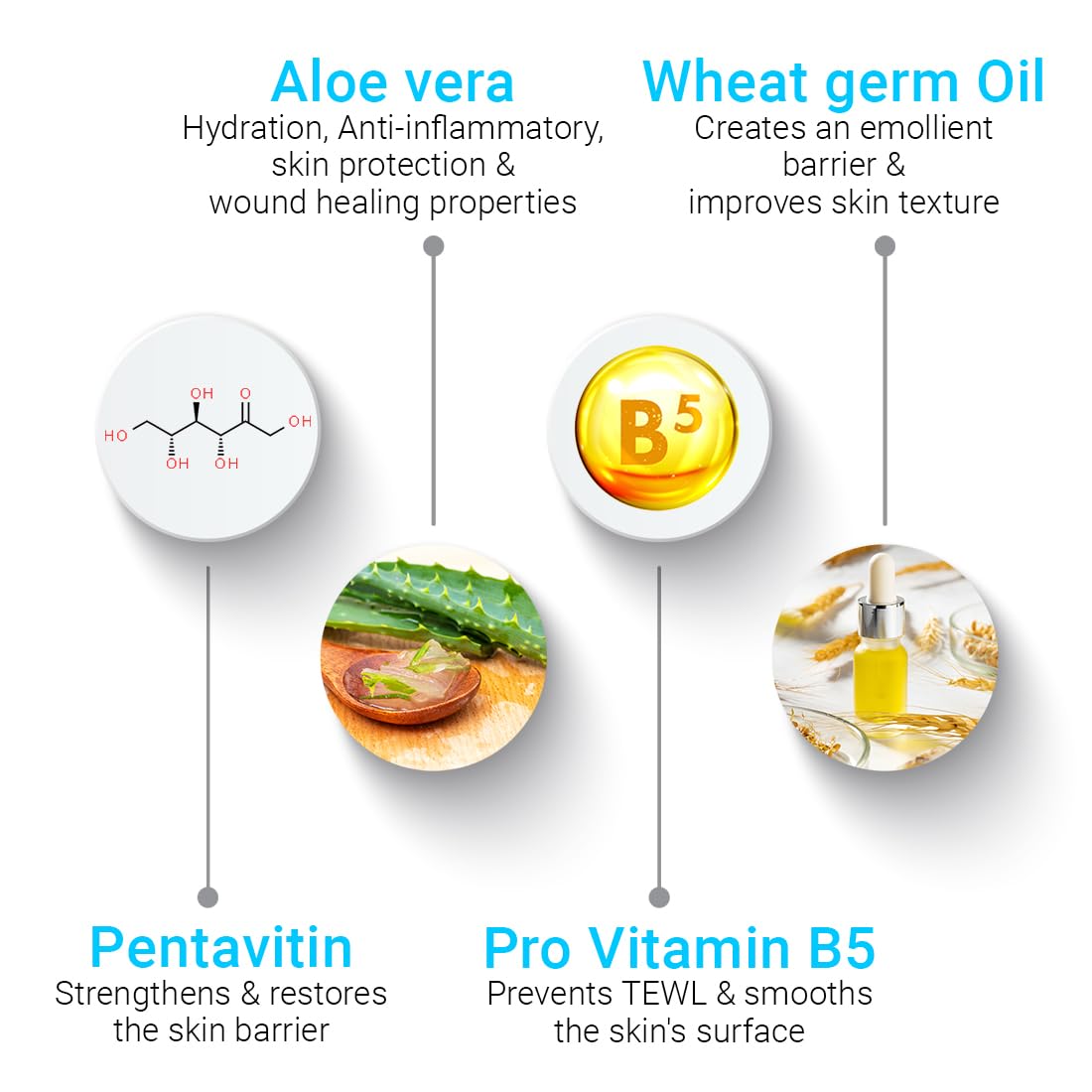 PREVENTS MOISTURE LOSS: Enhanced with Wheat Germ Oil and Pro Vitamin B5, this moisturizer prevents transepidermal water loss, locking in moisture for improved texture and hydration. Pentavitin binds to the skin’s natural keratin, forms a moisture barrier.