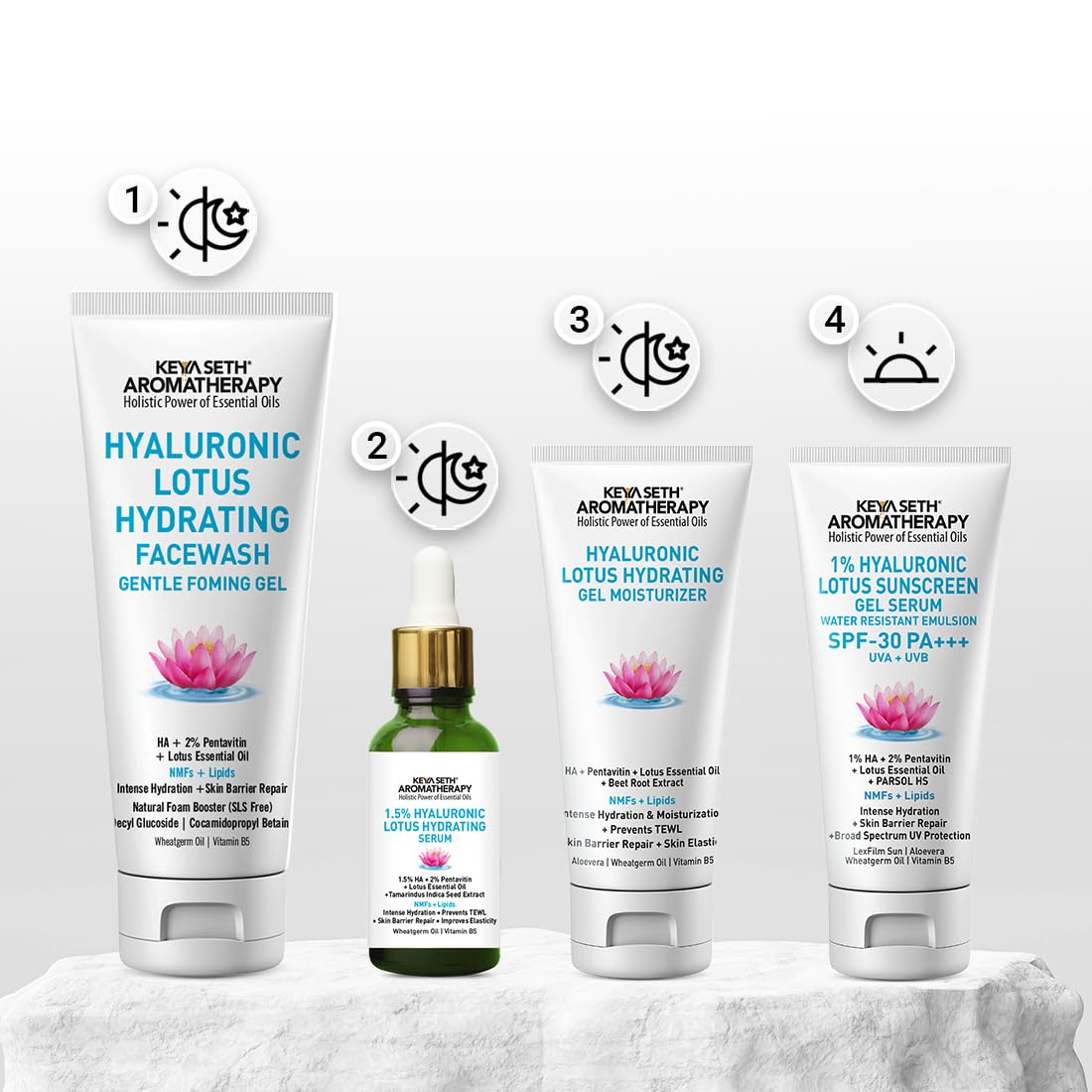 REPAIRS SKIN BARRIER: Lotus Oil makes skin hydrated, soothes & protects the skin barrier with antioxidants, fatty acids & minerals. Regenerating lipids in the skin’s barrier, Hyaluronic acid helps keep the skin cells in balance & protects from free radicals. Pentavitin strengthens the defence mechanism & restores the skin barrier.