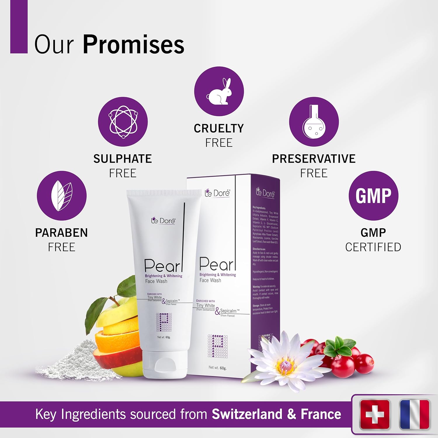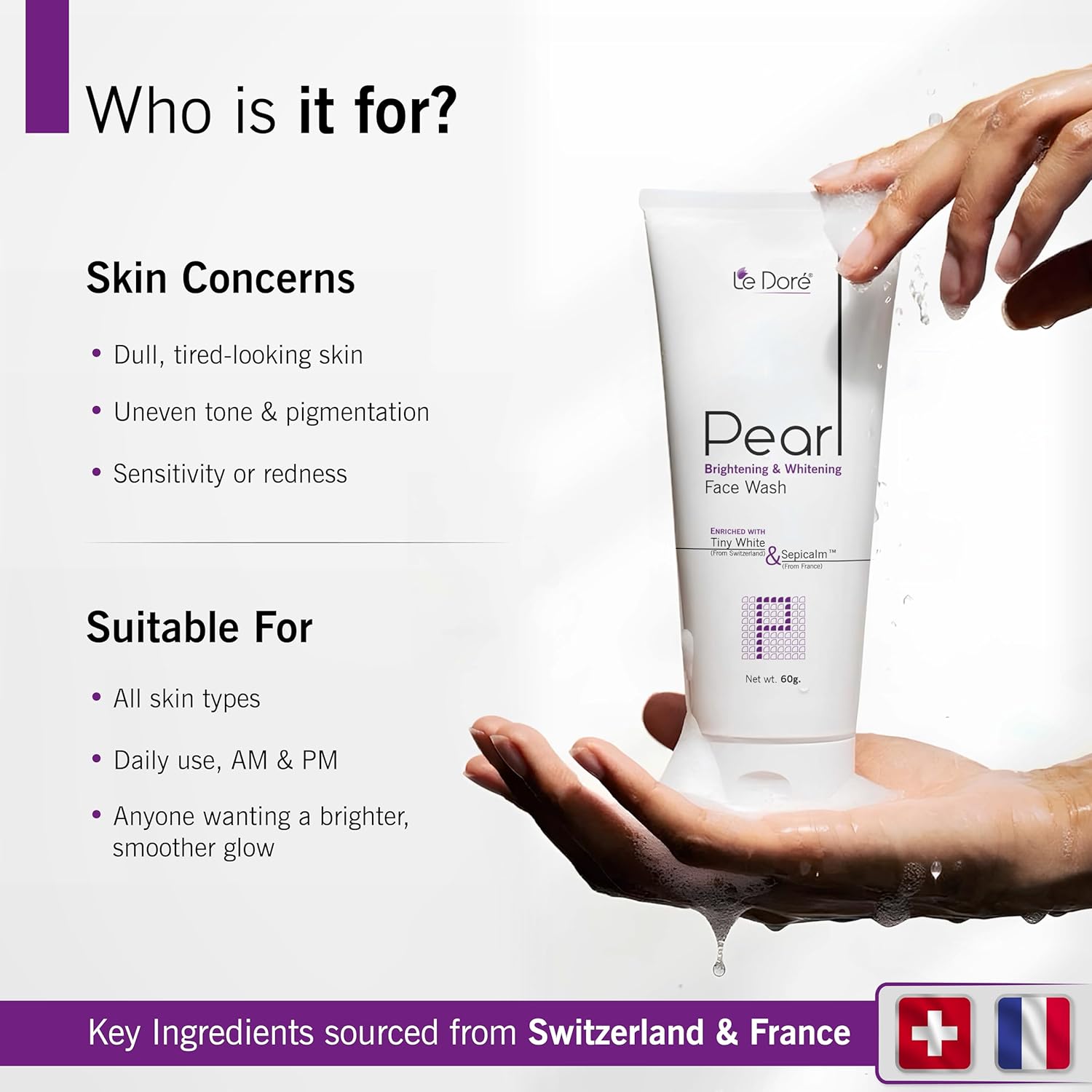 Le Dore Pearl Face Wash | Clinically Proven for Instant Glow & Radiance | With Pearl Extract for Brightening & Even Skin Tone | For All Skin Types | 60g
