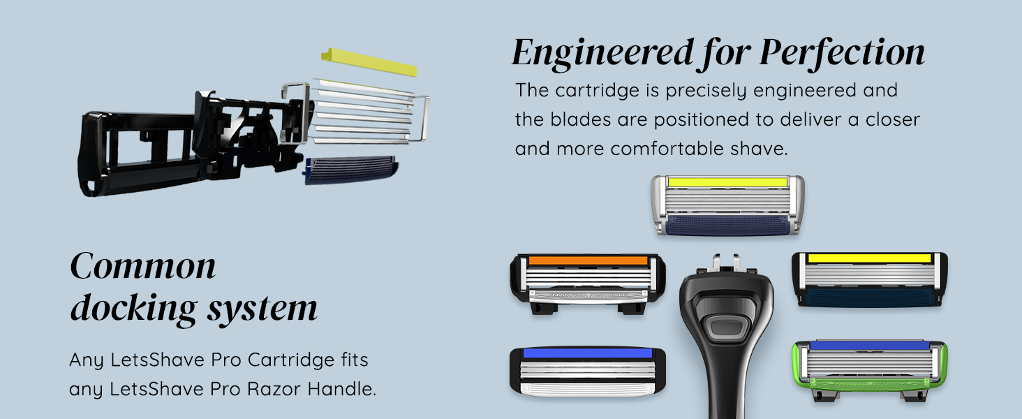 LetsShave Pro 6 Advance Manual Shaving Razor Blades Refills (Cartridge), Pack of 4, World’s First 6-Blade & Precison Back Blade with Argan Oil & Aloe Vera Infused Moisture Bar, Blades for Men
