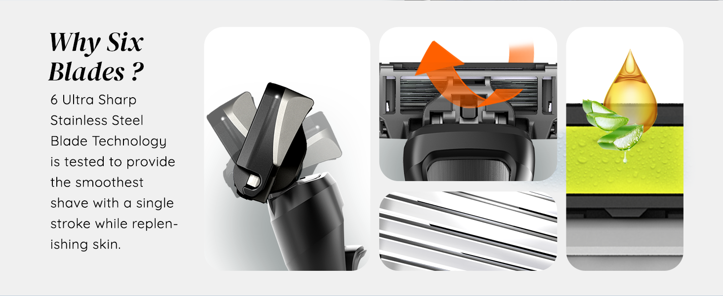 MORE BLADE COUNT FOR A CLOSER SHAVE: Experience a closer shave on using the 6 blade technology. Proven ability through tests for a smoother and closer shave. Sold in 130 countries since 1955, now in India.