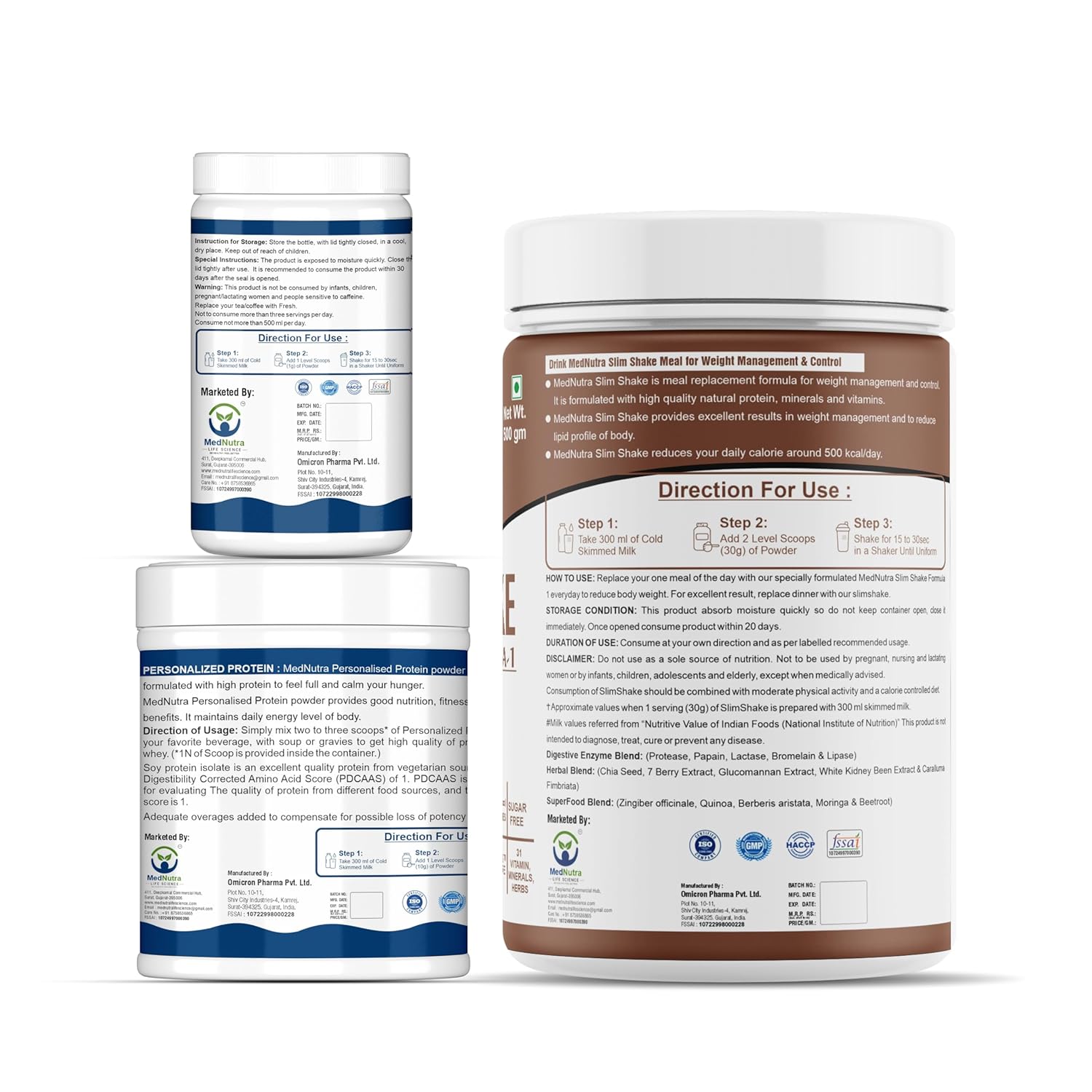 MedNutra Weight Management Bundle, Chocolate Slim Shake 500g, Fresh Energy Drink, Personalized Protein 200g