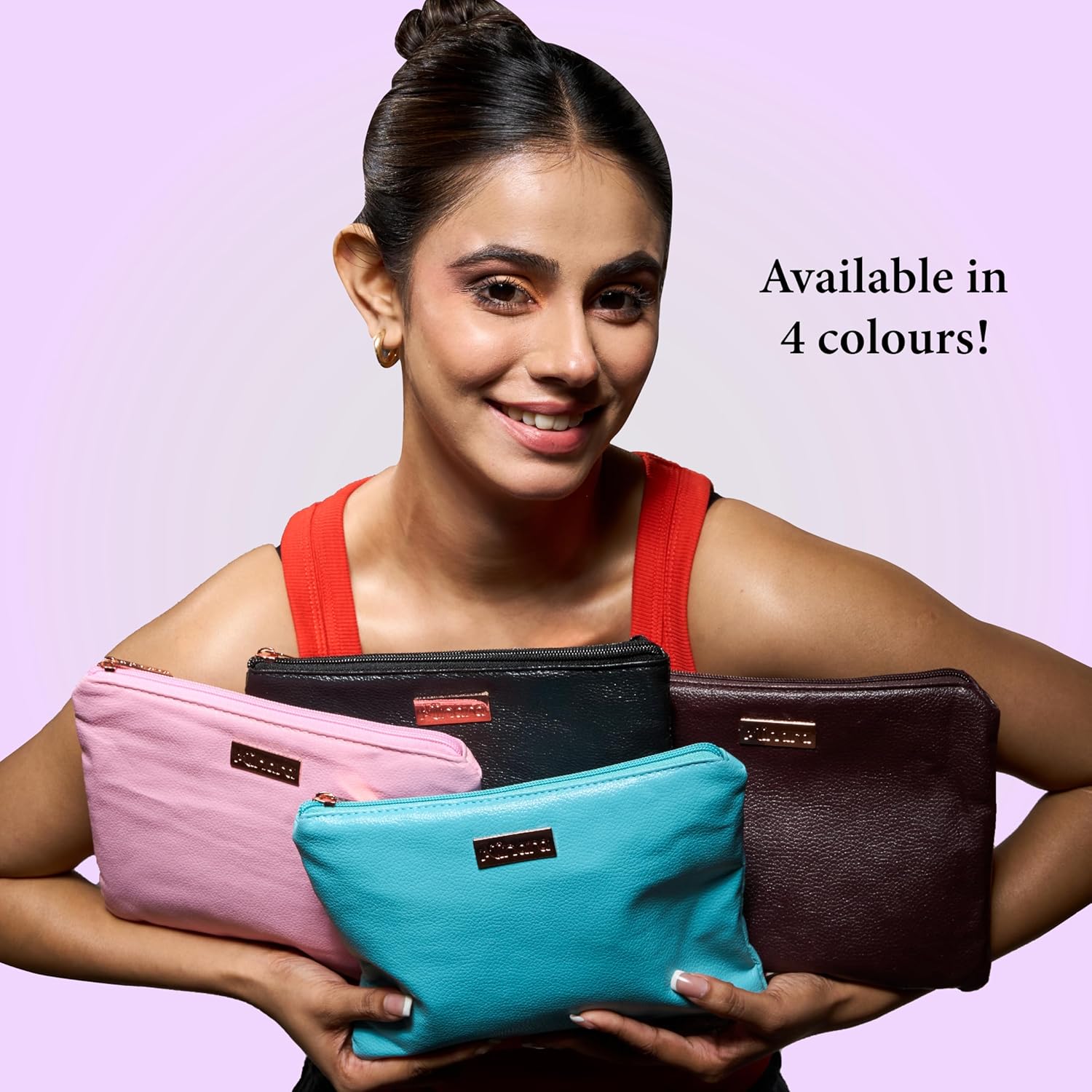VEGAN & CRUELTY FREE BRISTLES : The bristles in our makeup pouch are constructed of a long-lasting synthetic fibre – smooth and silky nylon-assuring long-term use. The makeup brushes are very delicate and thick, making them suitable for even the most sensitive skin. The brushes would be a tremendous assist in creating a perfect look with their high powder holding capacity.