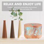 Elegant Metal Woodgrain Artwork: Our mini essential oils diffuser put the metal with woodgrain together, make the whole mini diffuser more texture, small size will not take up too much space (3.5*2.6inch) suitable for table, bedroom, living room,portable diffuser can also take it on a trip, Even outside you can also have a reassuring scent